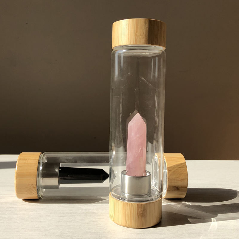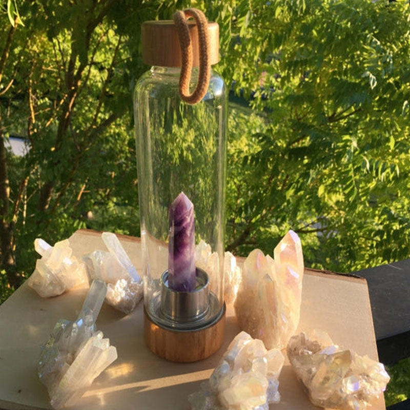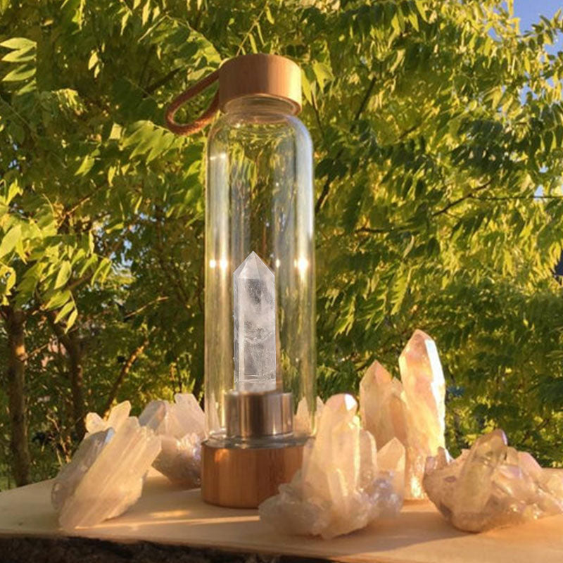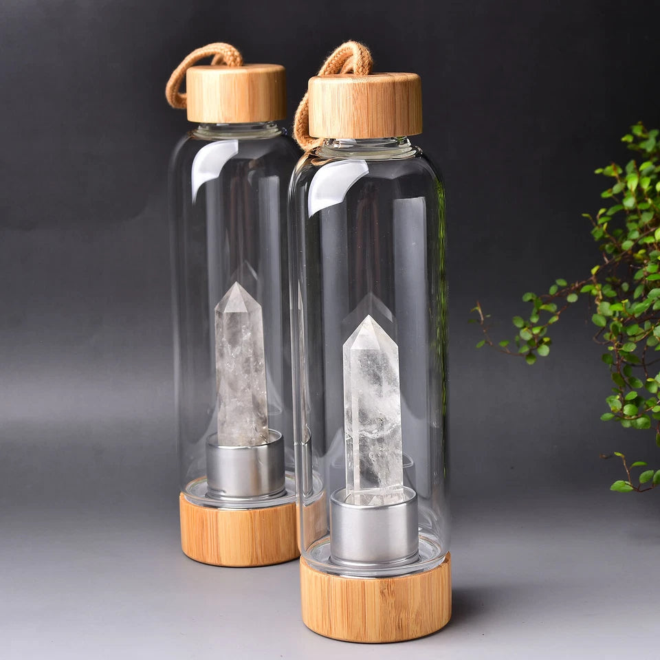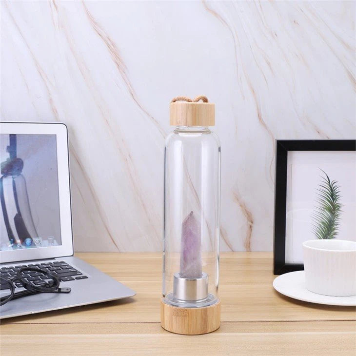 It’s a reusable bamboo and glass water bottle with natural slimming crystals inside, designed to infuse your water with energy that supports hydration, digestion, and natural weight loss.