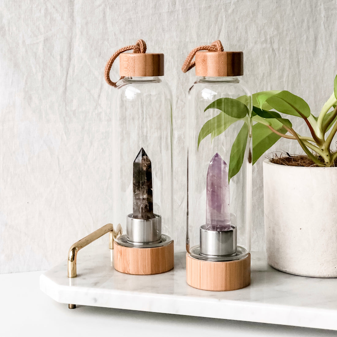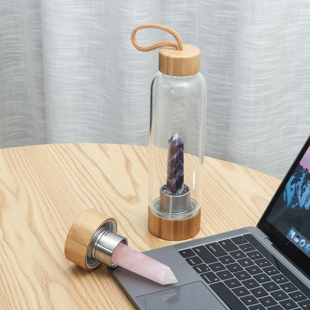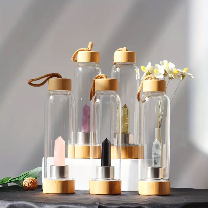 It’s a reusable bamboo and glass water bottle with natural slimming crystals inside, designed to infuse your water with energy that supports hydration, digestion, and natural weight loss.