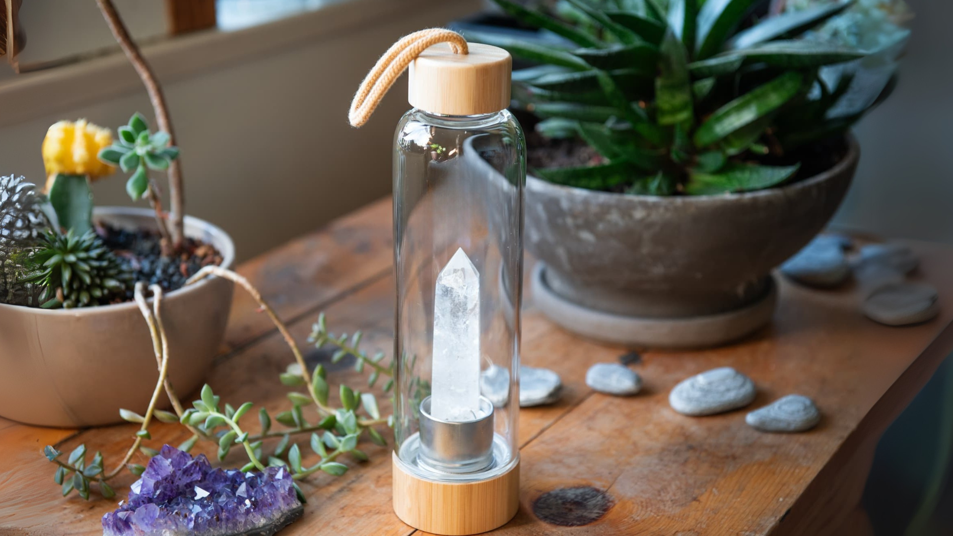 Allow the crystals to naturally energize and revitalize your water for a few minutes.